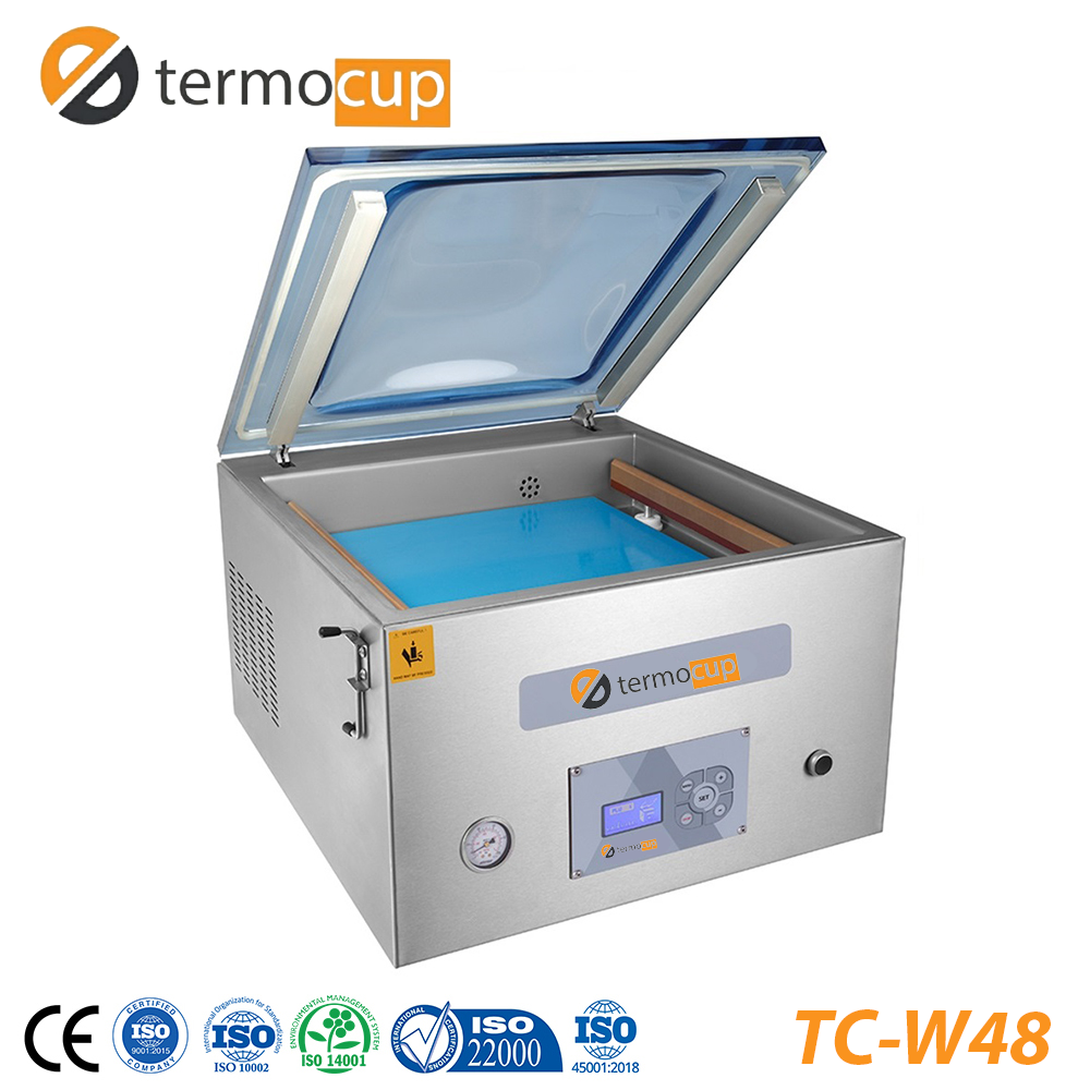 TermoCup TC-W48 Vakum Paketleme Makineleri modellerimiz arasında ekonomik seridir. Yer kaplamadan kolay kullanım sayesinde hemen vakum paketleme işlemlerine başlanılabilir. vakumlama süresi 15 – 25 saniye arasındadır.